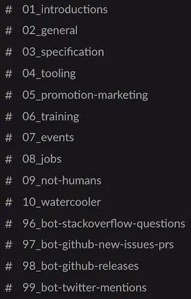 All the official Slack channels are listed below: